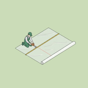 Découpez votre bâche à la bonne taille, en veillant à laisser 20 cm de débord en largeur & longueur pour fixer votre bâche.